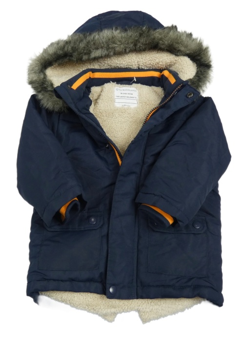 Tmavomodrá šušťáková zateplená bunda s kapucňou s kožešinou Primark