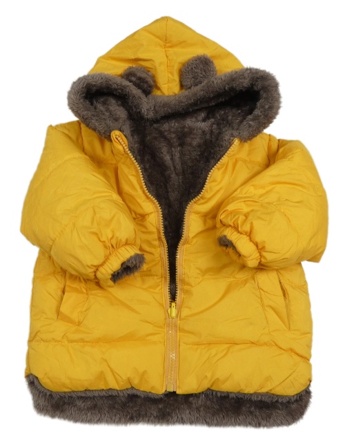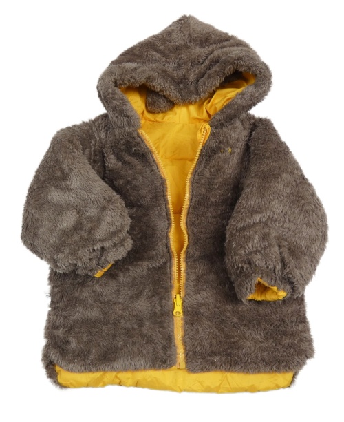 Hnedá kožušinová obojstranná zimná bunda s kapucňou