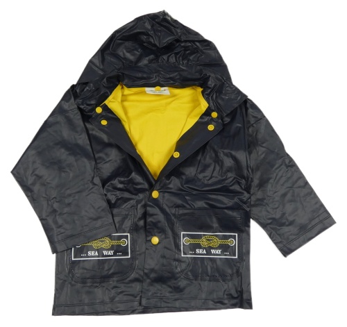 Tmavomodrá pláštěnka s uzly a lodičkami a odopínacíá kapucňou