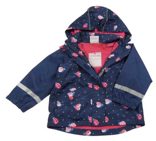 Tmavomodrá šušťáková podšitá bunda s lienkami a kapucňou Topomini