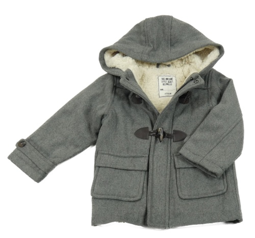 Sivý vlnený zateplený kabát s kapucňou Matalan