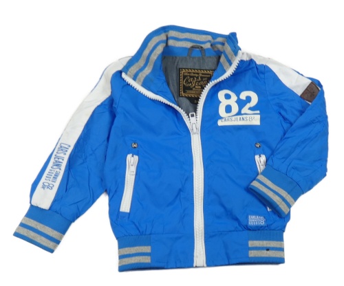 Modro-biela šušťáková jarná bunda s číslom Cars Jeans