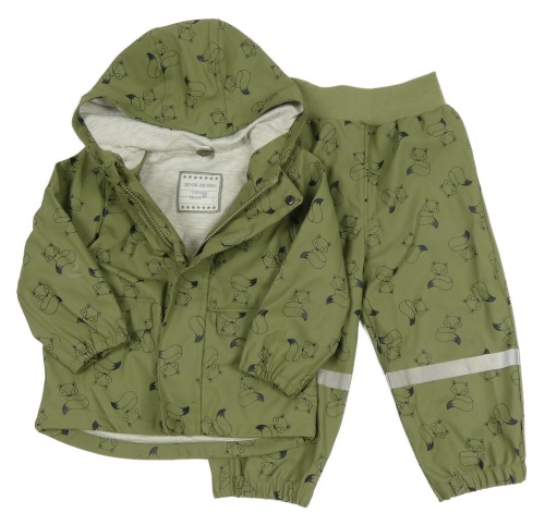 2Set - Khaki nepromokavá jarná bunda s liškami a kapucí + nohavice Topomini