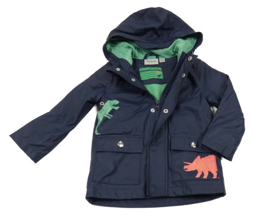 Tmavomodrá nepromokavá jarná bunda s dinosaurami a kapucňou Impidimpi