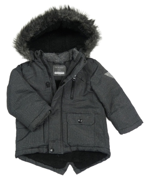Tmavosivá melírovaná šušťáková zimná parka s kapucňou s kožešinou PRIMARK