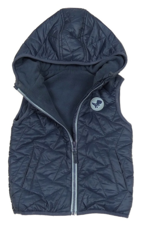 • Tmavomodrá prešívaná šušťáková zateplená vesta s dinosaurom a kapucňou St. Bernard