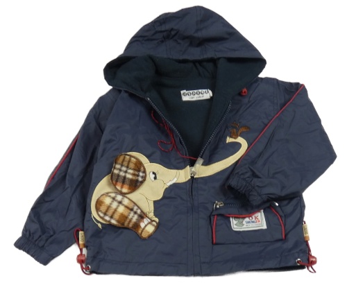 Tmavomodrá šušťáková jarná bunda so slonom a kapucňou