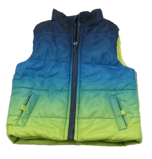 • Tmavomodro-modro-zeleno-limetková ombré prešívaná šušťáková zateplená vesta PUSBLU