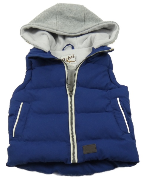 Tmavomodrá šušťáková zateplená vesta s teplákovou kapucňou Rebel