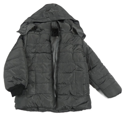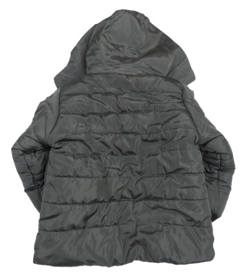 Tmavošedo-čierna prešívaná šušťáková zimná bunda s odopínacíá kapucňou