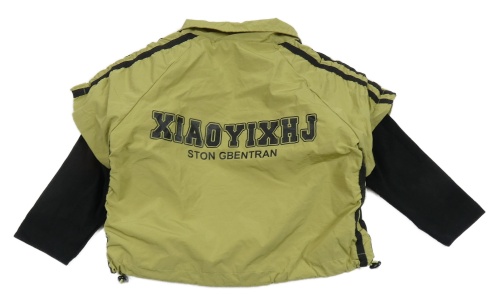 Zeleno-čierna šušťáková jarná bunda s nápisom a pruhmi