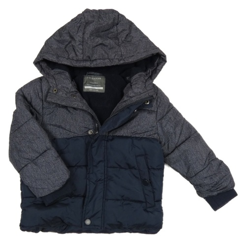 Tmavomodro-melírovaná prešívaná šušťáková zimná bunda s kapucňou PRIMARK