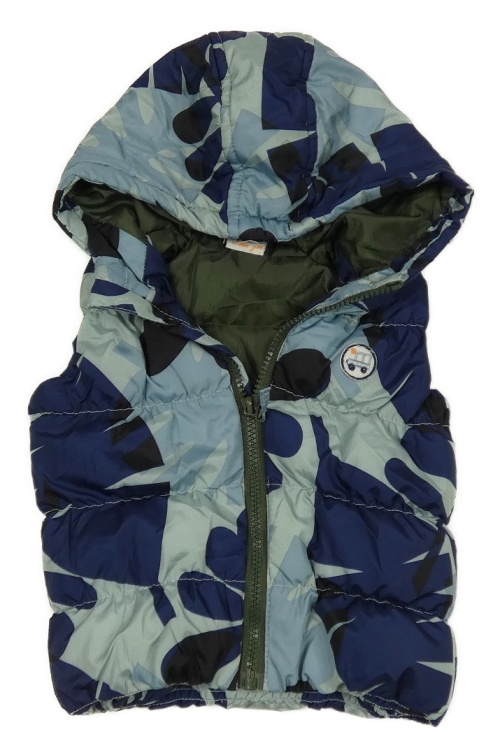 Modro-tmavomodrá šušťáková zateplená vesta s autom a kapucňou Hema