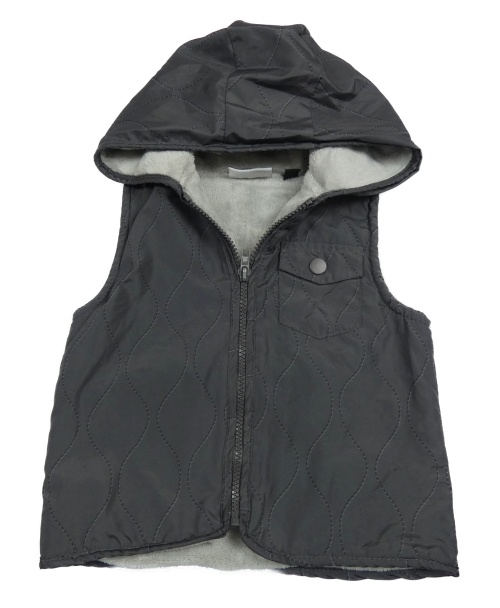 Tmavosivá vzorovaná šušťáková zateplená vesta s kapucňou mick mack