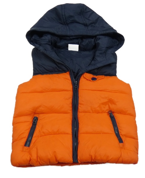Tmavomodro-oranžová šušťáková zateplená vesta s kapucňou F&F