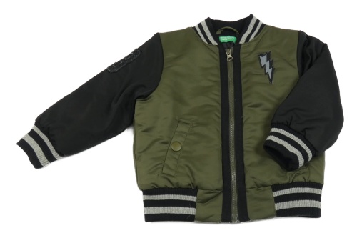 Khaki-černý šusťákový zateplený bomber s bleskom Benetton