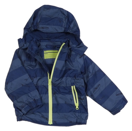 Tmavomodrá pruhovaná šušťáková jarná bunda s velrybami a kapucňou Impidimpi