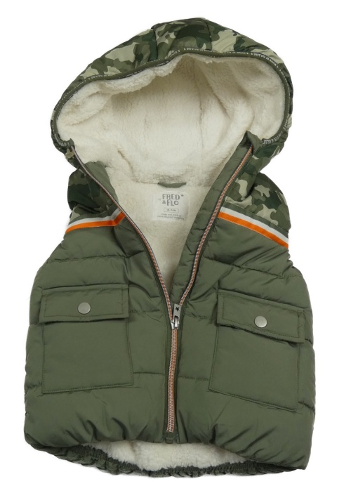Khaki-army šušťáková zateplená vesta s kapucňou F&F