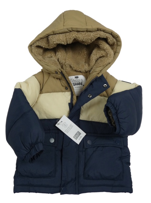 Nové - tmavomodro-smetanovo-béžová šušťáková zimná bunda s kapucňou F&F