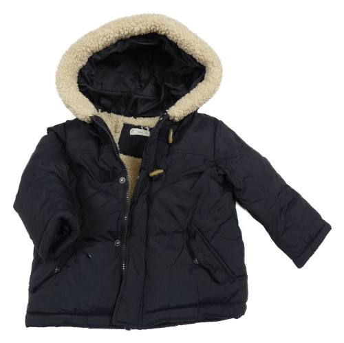 Tmavomodrá šušťáková zimná bunda s kapucňou s beránkem Mango