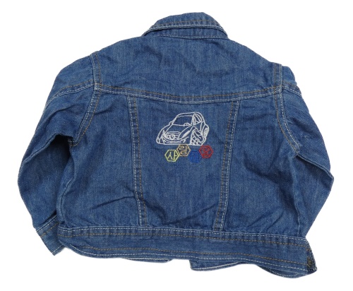 Modrá rifľová bunda s autom