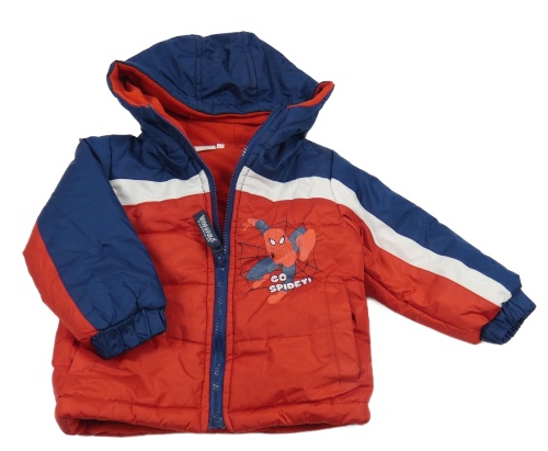 • Tmavomodro-bielo-červený šušťáková zimná bunda so Spidermanem a kapucňou Marvel