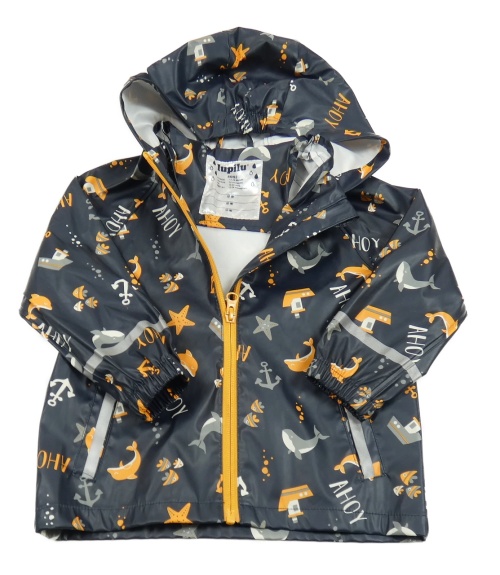 Tmavomodrá nepromokavá bunda s rybičkami a kapucňou Lupilu