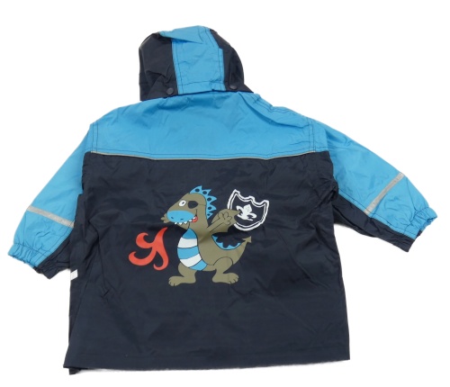Nové - Tmavomodro-tyrkysová šušťáková nepromokavá bunda s drakom a kapucňou Papagino