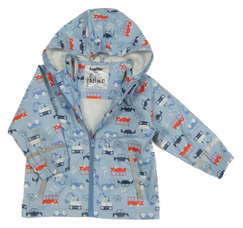 Svetlomodrá vodeodolná jarná bunda s autami a kapucňou Lupilu
