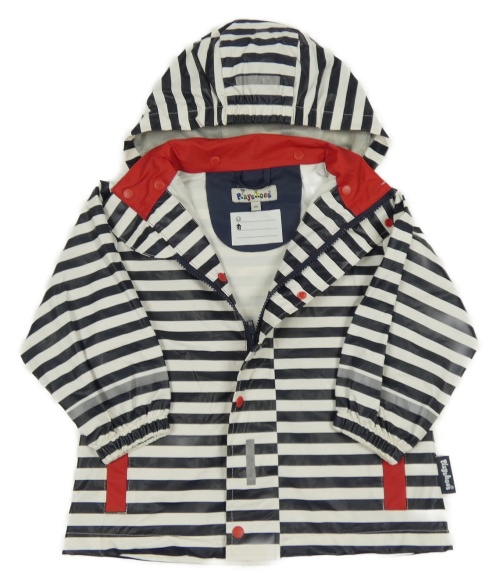 Bielo-tmavomodrá pruhovaná vodeodolná jarná bunda s kapucňou