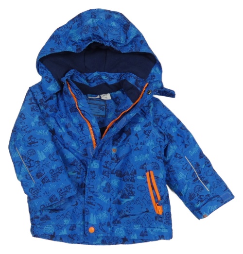 Modrá šušťáková lyžiarska bunda s potlačou a kapucňou Lily&Dan