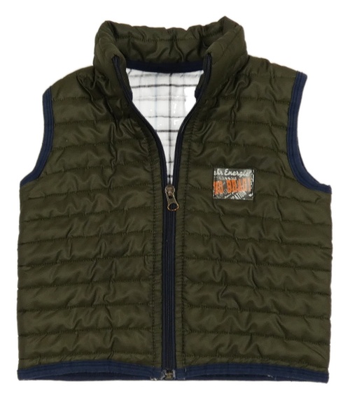 Olivová šušťáková prešívaná zateplená vesta s nápisom
