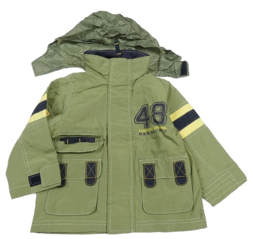 Khaki šušťáková jarná bunda s číslom a ukrývací kapucňou