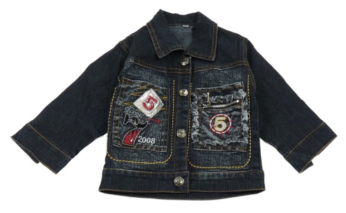 Tmavomodrá rifľová bunda s číslami a golierikom