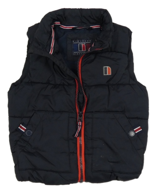 Tmavomodrá prešívaná šušťáková zateplená vesta s nášivkou Next