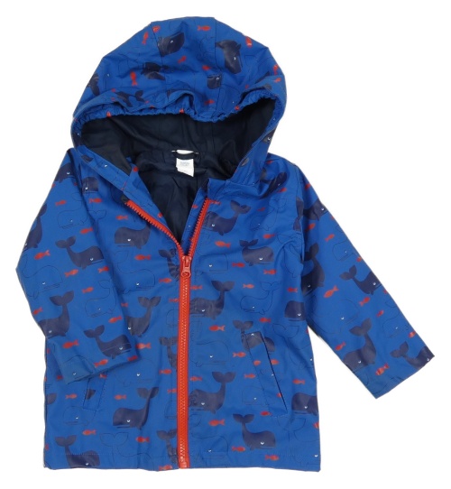 Tmavomodrá vodeodolná jarná bunda s velrybami a kapucňou C&A