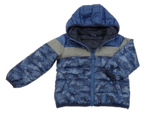 Tmavomodro-sivá šušťáková zateplená bunda s dinosaurami a kapucňou Impidimpi