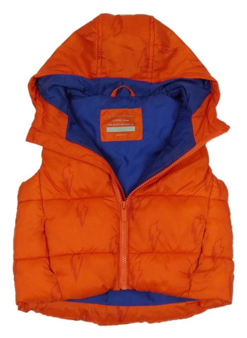 Červená šušťáková zateplená vesta s bleskami a kapucňou Primark