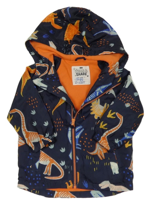 Tmavomodrá šušťáková jarná bunda s dinosaurami a kapucňou F&F