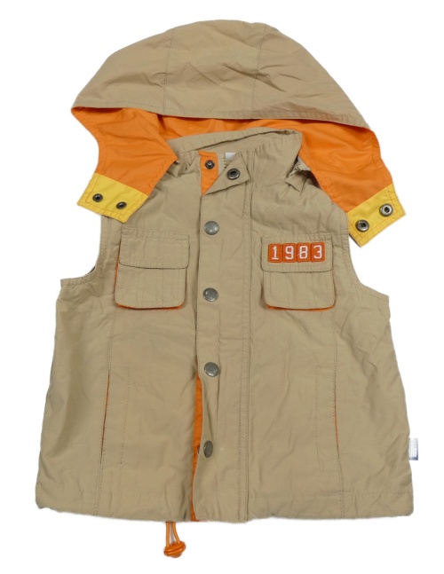 Béžová šušťáková jarná vesta s vreckami a kapucňou