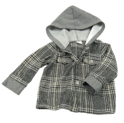 Sivá kockovaná košeľová bunda s kapucňou