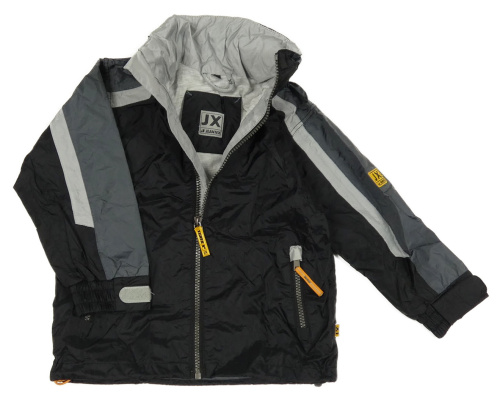 Čierno-sivá jarná šušťáková bunda s kapucňou