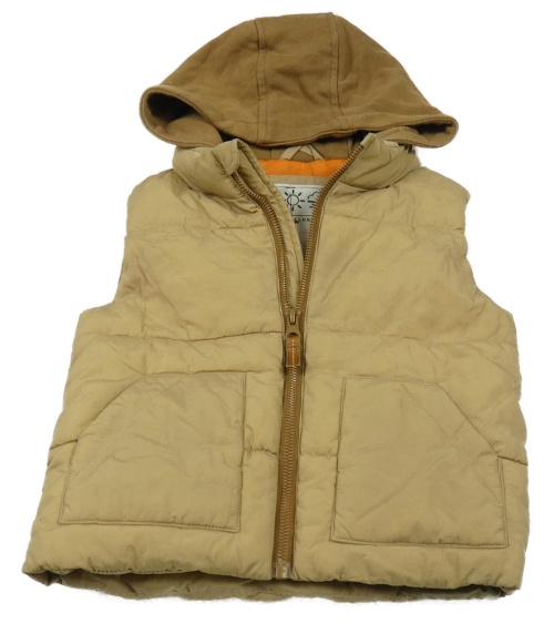 Béžovo-hnedá šušťáková zateplená vesta s kapucňou Tu
