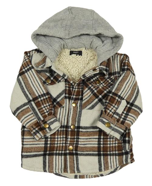 • Béžovo-hnedo-čierna kockovaná zateplená košeľová bunda s teplákovou kapucňou Next
