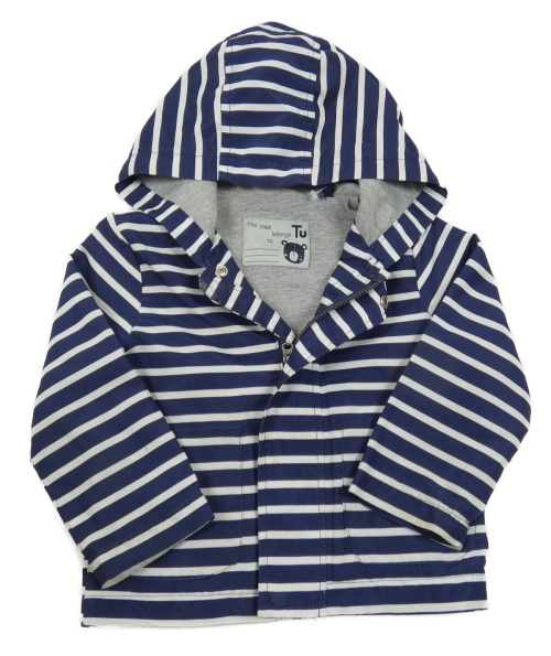 Tmavomodro-biela pruhovaná šušťáková jarná bunda s kapucňou Tu