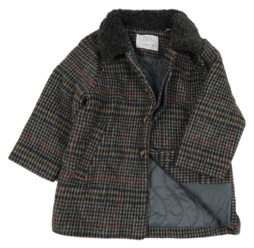 Tmavošedo-čierno-modrý kockovaný vlnený zateplený kabát Zara