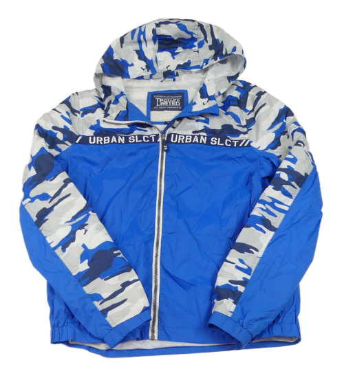 Modro-army šušťáková jesenná bunda s pruhom s nápismi a kapucňou C&A