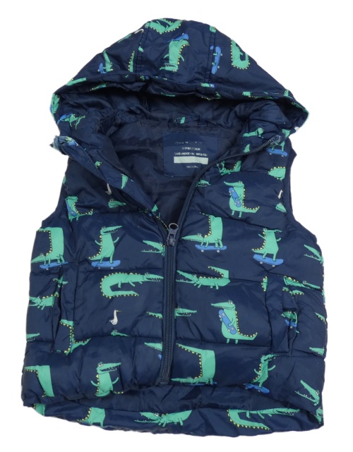 Tmavomodrá šušťáková zateplená vesta s krokodílmi a kapucňou Primark
