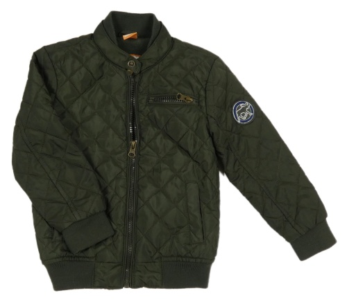 Khaki prošívaný šusťákový zateplený bomber s nášivkou PUSBLU