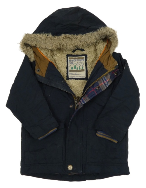 Tmavomodrá šušťáková zateplená bunda s kapucňou s kožešinou Next
